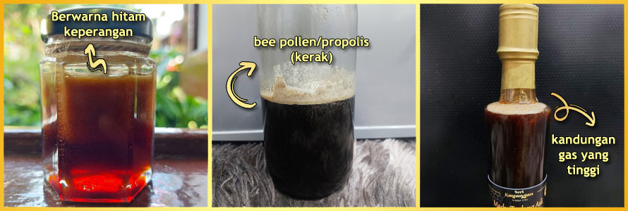 • Kandungan gas tinggi dan bunyi "pop" akan kedengaran bila madu berfementasi