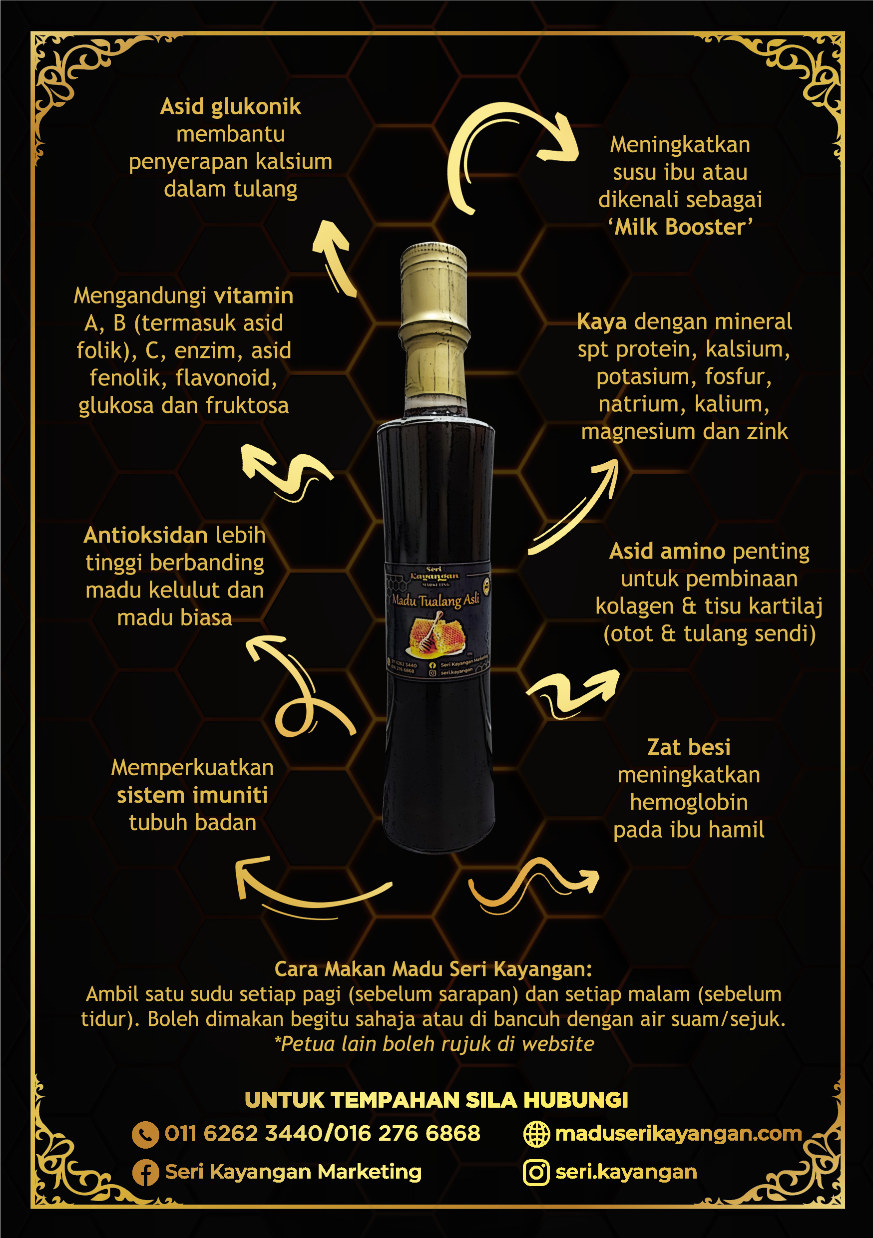 • Di sahkan oleh Malaysia Genome Institute sebagai madu mentah